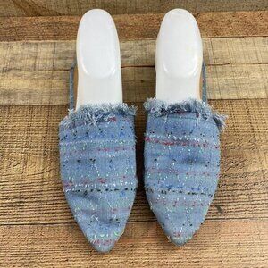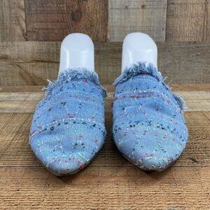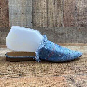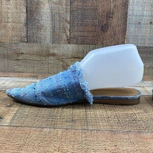 Lucky Brand Blue Fringe Bapsee Flats Mules Womens 8.5M Slip On Pointed Toe