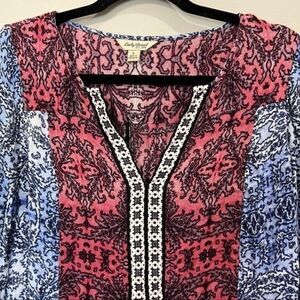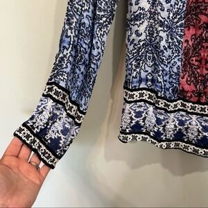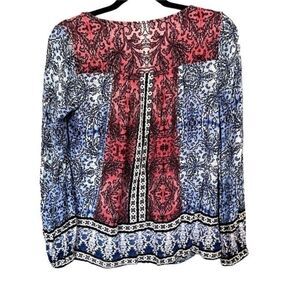Lucky Brand Blue Red Rayon Long Sleeve v-Neck Peasant Top size small s