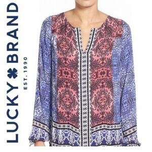 Lucky Brand Blue Red Rayon Long Sleeve Peasant Top size small s