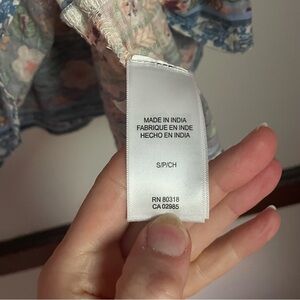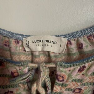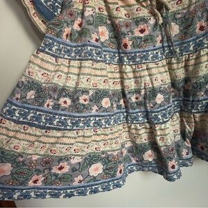 Lucky Brand Bohemian Blue and Tan Floral Tiered Blouse