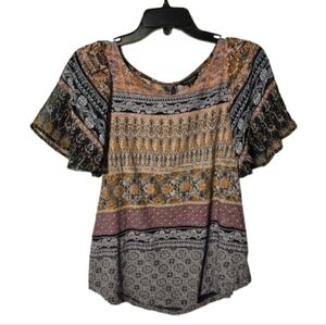 Lucky Brand Bohemian Multicolor Women's Top with Triangle Cut-Out Size S/P NWOT