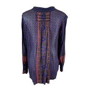 Lucky Brand Boho Aztec Festival Tunic Top V Neck Long Sleeve XL