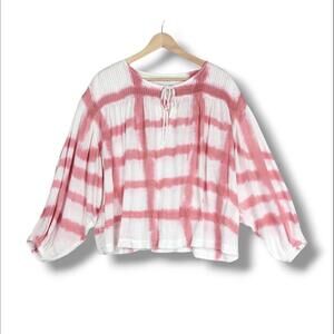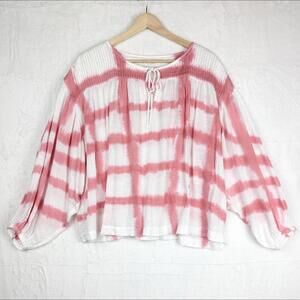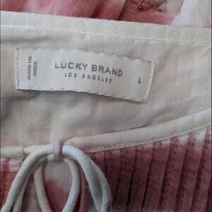 Lucky Brand Boho Blouse Top Large White Pink Tie Dye