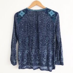 Lucky Brand Boho Blue Embroidered Long Sleeve Top. Beautiful blue & purple print and embroidery along to collar and back shoulder.