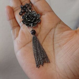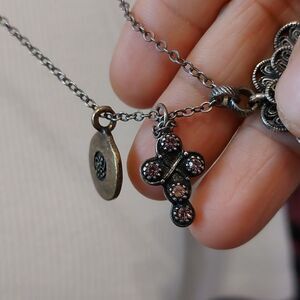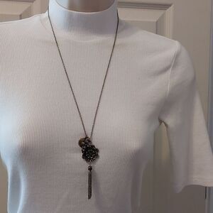 Lucky Brand Boho Chic Flower Rhinestone Cross Tasseled Necklace Vintage 90s
