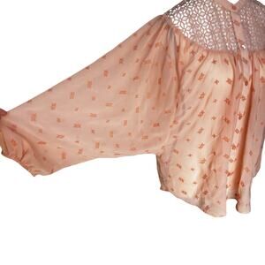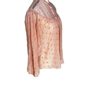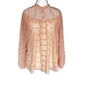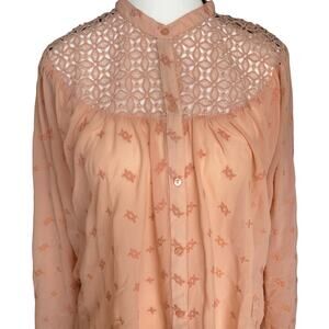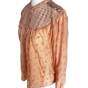 Lucky Brand Boho Embroidered Lace Crochet Sheer Peasant Top Peach Womens Large