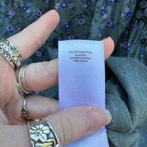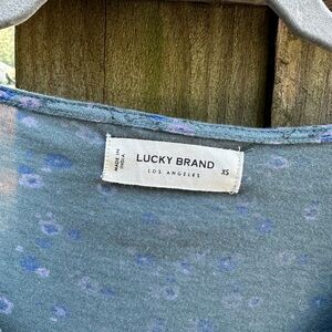Lucky Brand Boho Floral Modal Blend V Neck Pleated Bubble Sleeve Blouse