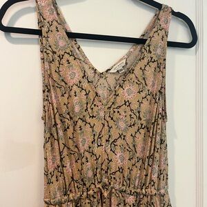 Lucky Brand Boho Floral Sleeveless Maxi Dress in Tan and Pink Size XS