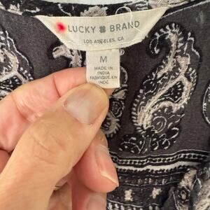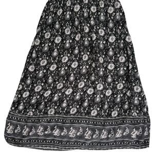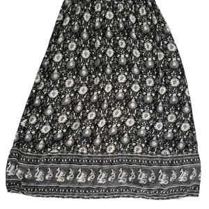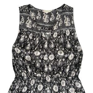 Lucky Brand Boho Midi Dress Size Medium Black White Floral Lined Sleeveless Casual