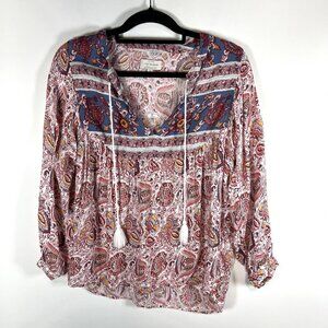 Lucky Brand Boho Peasant Top Size S Paisley Tassel Hippie Beach Vacation Boho