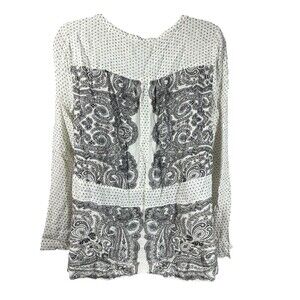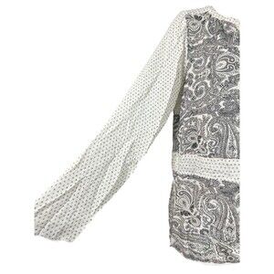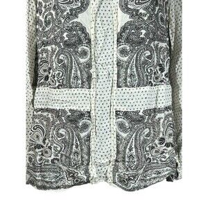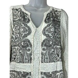 Lucky Brand Boho Peasant Top Small Black White Paisley Print Long Sleeve Rayon