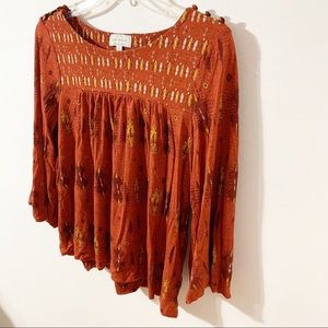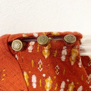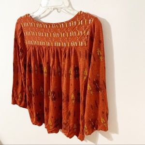 Lucky Brand Boho Print Viscose Blouse Scoop Neckline 3/4 Bell Sleeves Buttons