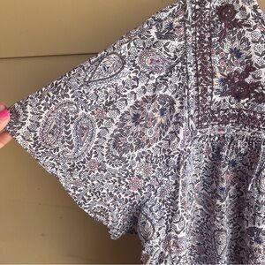 Lucky Brand Boho Short Sleeve Top - Size XL - Hippie Embroidered Paisley Modest