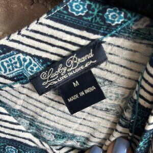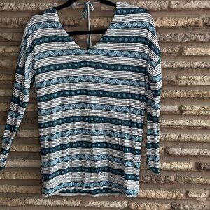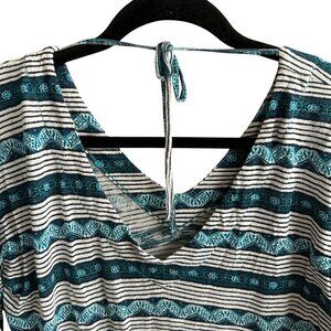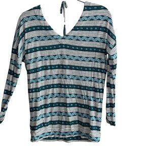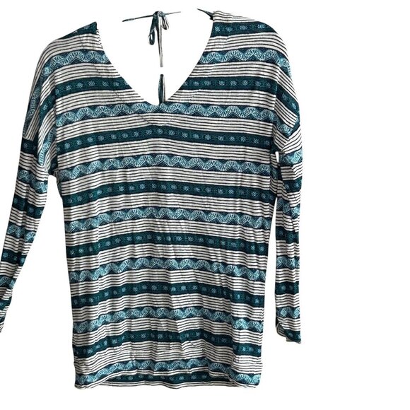 Lucky Brand Boho Striped V Neck Tie Back Long Sleeve Tee Size Small