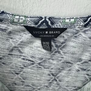 Lucky Brand Boho Top 1X Blue Green Mixed Print Split Neck Long Sleeve