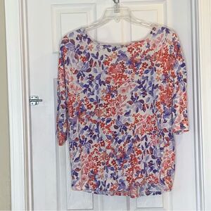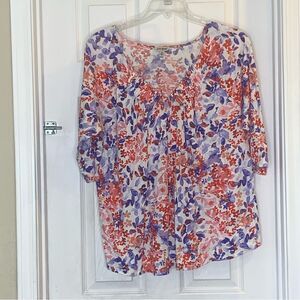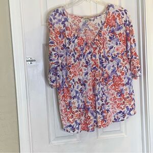 Lucky Brand Boho Watercolor Floral Print Top Size 2X