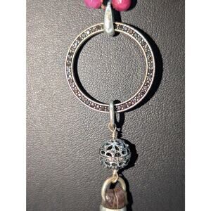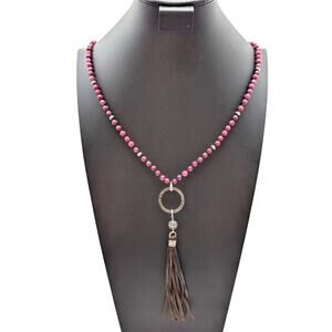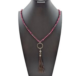 Lucky Brand Boho Purple Wine Crystal Rhinestone Leather Tassel 34"-35.5" Necklace. Pre-owned, this necklace is in excellent condition.