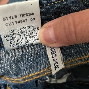 * 5 pockets, decorative opening on cuffs seen in pictures factory distress at pocket tops and cuffs! great jeans