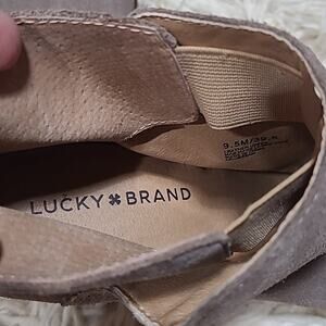 Lucky Brand Bootie 9.5 Peep Toe Taupe Wedge Suede Leather