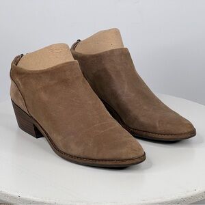 Lucky Brand Booties Brown Suede Ankle Boots Boho Bohemian Leather Stacked Heel Back Zipper Western Cowgirl Country Indie Festival