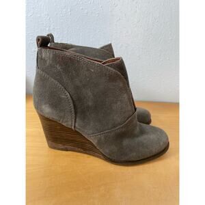 Lucky Brand Booties Size 8 Yasmin Gray Suede Ankle Officecore Minimalist Preppy