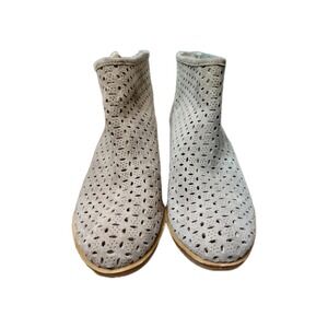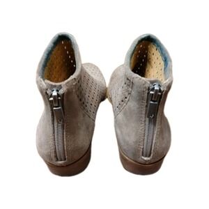 Lucky Brand Booties Womens Gray 8M Basel 3 Laser Perforated Almond Toe Suede