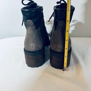 Lucky Brand Boots Dareek Taupe Suede Leather Lace Up Chunky Heel Combat