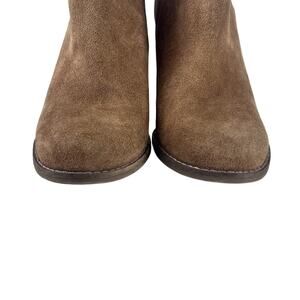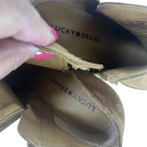 Lucky Brand Brown Ankle Boots Womens 7 Suede Stacked Wedge Y2k Booties Casual