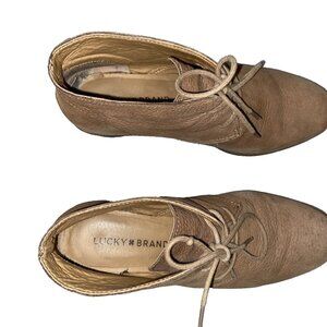 Lucky Brand Boots Womens 7.5 M Junes Desert Wedge Ankle Bootie Brown Leather