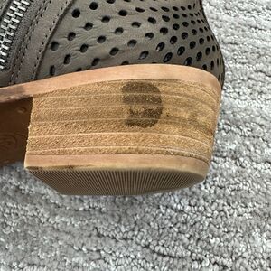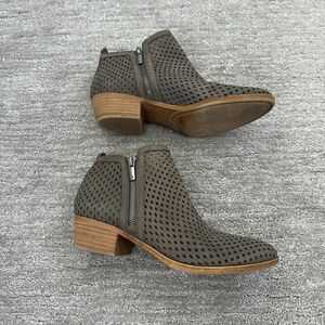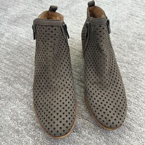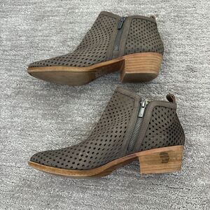 Lucky Brand Boots Womens 9 Gray Leather Basel Ankle Bootie Perforated Mesh