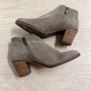 Lucky Brand Boots size 7.5 Suede Leather Taupe Gray Ankle Booties LP-Ponic