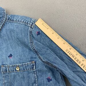 Lucky Brand Boyfriend Shirt Womens XS Denim Classic Chambray Floral Embroidery