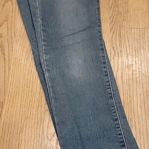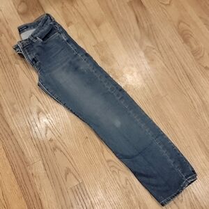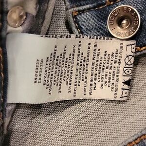 Lucky Brand Boy's Jeans Billy Straight model. Size 14. Waist measures 14" across front. Inseam 29", outseam 36.5", rise 9", leg opening 7" wide. This pair is very soft, brushed feel, and very stretchy, a little more wear, see photo of tag with fabric details. small white marks on left thigh near side seam, and back of left leg (black marks along edge) see photos.