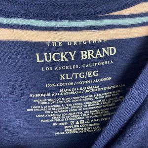 Lucky Brand Boys Kids Striped Good Fortune T-Shirt Navy Blue Pink Size XL