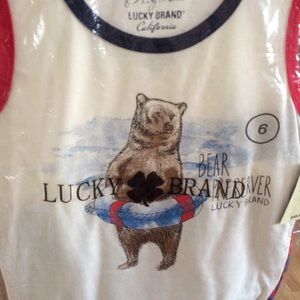 Lucky Brand Boys Tank and Board Shorts Set, 6. "Bear Preserver" graphic. NWT