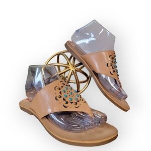 Lucky Brand 'Breese' Sandal Tan Thong with turquoise embellishments boho Size 7