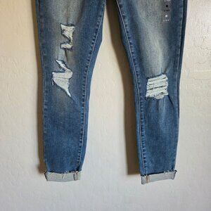 NEW Lucky Brand Bridgette High-Rise Denim Cuff Ankle Jeans Blue Distressed Exposed Button Fly Size Women's 6/28R