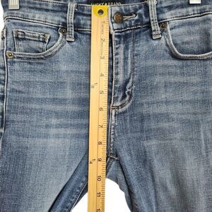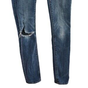 The Lucky Brand Bridgette Skinny Women's Ankle Jeans in size 00/24 are a stylish addition to any woman's wardrobe. These distressed, blue denim jeans feature a solid pattern with a zip and button closure, a mid-rise fit, and a regular size type. Made from a cotton blend fabric, these jeans have a 5-pocket design with a logo accent and a 29-inch inseam. Perfect for casual wear, these Lucky Brand jeans are machine washable and easy to care for.