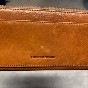 Lucky Brand Brown 100% Genuine Leather Full Zip Wallet Clutch