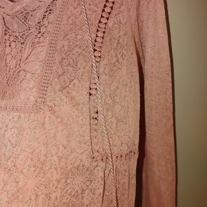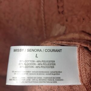 This Lucky Brand blouse features a charming bib collar and is crafted in a warm brown hue. The blouse has a relaxed fit with a soft, lightweight knit fabric, making it perfect for casual wear. Its full-length sleeves add a touch of elegance to this comfortable top.