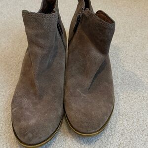 Stylish heeled boots by Lucky Brand. Soft suede texture. Side zipper for easy wear.