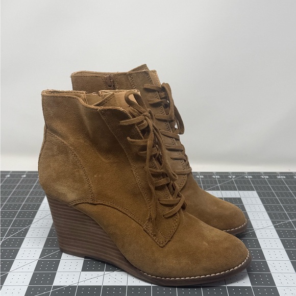Lucky Brand Brown Lace Up Wedge Boots sz 7.5 (SHVOWK)