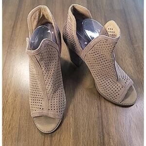 Lucky Brand Brown Laser Cut Western Open Toe High Heel Booties Sz 9M