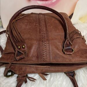 Lucky Brand Brown Leather Fringe Tote/Crossbody bag medium size