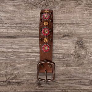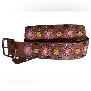 Lucky Brand Brown Leather Tooled Embroidered Belt in excellent pre-owned condition. This particular belt is difficult to find. Not in any other selling site at the moment.
