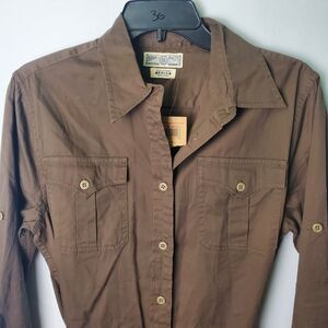 Lucky Brand Brown Shirt Dress Button Down Midi Size Medium