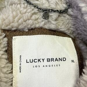 Lucky Brand Brown Suede Faux Shearling Asymmetric Button Moto Jacket Coat Sz XL