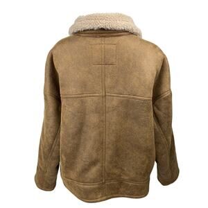 Lucky Brand Brown Suede Faux Shearling Faux Fur Asymmetric Button Moto Jacket Coat Size XL
