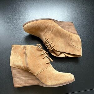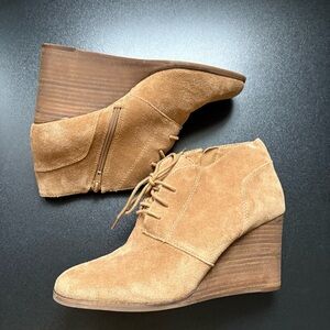 Lucky Brand Brown Tan Suede Wedge Ankle Booties Lace Up Women's 9.5 Minimalist