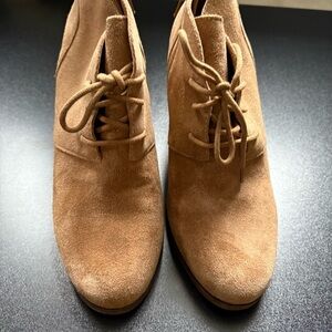 Lucky Brand Brown Tan Suede Wedge Ankle Booties Lace Up Women's 9.5 Minimal